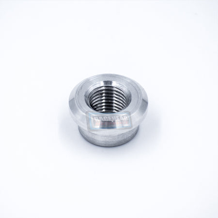 These CNC Billet M12x1.25 Flush-mount Female Weld-in Bungs are made with best quality Aluminum and Strength in mind. Our M12x1.25 Flush-mount Female Bungs have a thread pitch of M12x1.25 and has a recessed stepped down lip to be able to flush mount bung to application.