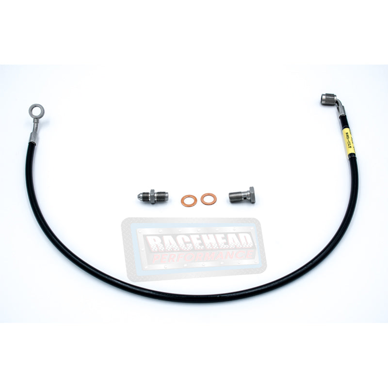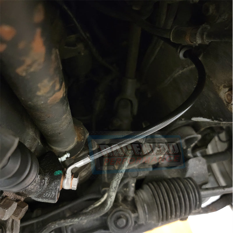 RHP R32 Skyline GTR Clutch Line is made to fit on Push style clutches slave cylinders plus are made with stainless steel braided Teflon PTFE lined hose & have a black PVC coating. This coating makes hose resistant to chaffing if it routes against metal or other sharp edges in the engine bay and all. These clutch line are made to be routed while clearing the front driveshaft and can be secured with a rubber lined clamp, while unlike our competitors we use ideally the best angle fittings to give you the cleanest & most functional clutch line on the market. Our lines comes with a Stainless steel 45 degree banjo fitting for the clutch slave cylinder end and a stainless steel 90 degree fitting, plus comes with a AN adapter fitting to made for the OEM NISSAN Clutch Master Cylinder. All fittings are crimped on to ensure a leak-free installation and designed for a user friendly installation. All fittings & hoses are made with the best in the industry made by BMRS, which are used by most of the Nascar & Indy Race teams. After you deal with other installation headaches & leaking fittings of other competitor clutch line’s, you will be glad you spent the extra buck for a quality clutch line from RHP.