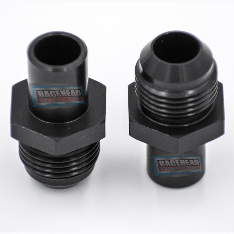 RHP SR20 or RB25 -10AN Valve Cover Fittings are CNC out highest quality of aluminum and are easy to adapt you Valve Cover Breather Fitting to AN to be able to run a SS or Nylon braided line to oil catch can. Install fittings by removing old OEM fittings then push-in new fitting into valve cover. These are precisely made to have a snug fitment and are anodized in black. Unlike competitors fittings, RHP fittings have a hex head base to be able to use two AN wrench to tighten or loosen lines, making your job easier on installation.