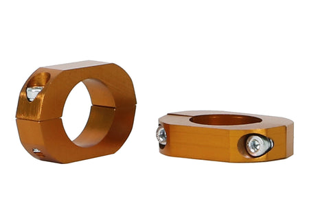 To suit 24mm diameter sway bars - the DIY (Do It Yourself) alloy lateral locking system can be utilized on both factory and more importantly aftermarket sway bars. The locks are easily installed on car with no need to remove the sway bar to install. They are mounted directly next to the sway bar mounting points and prevent shifting or sideways movement of the sway bar under lateral (cornering) loads. This results in improved sway bar effectiveness whilst preventing fouling of the sway bar on near by chassis and steering components.
