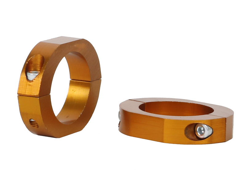 To suit 33mm diameter sway bars - the DIY (Do It Yourself) alloy lateral locking system can be utilized on both factory and more importantly aftermarket sway bars. The locks are easily installed on car with no need to remove the sway bar to install. They are mounted directl y next to the sway bar mounting points and prevent shifting or sideways movement of the sway bar under lateral (cornering) loads. This results in improved sway bar effectiveness whilst preventing fouling of the sway bar on near by chassis and steering components.